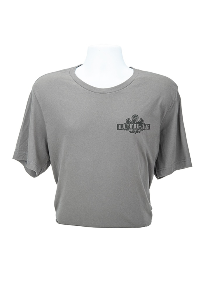 Crafted from 100% cotton for comfort and durability, this charcoal-colored shirt features the classic Luth-AR logo on the front and the bold AR Bobber graphic on the back, combining American horsepower with Second Amendment pride.