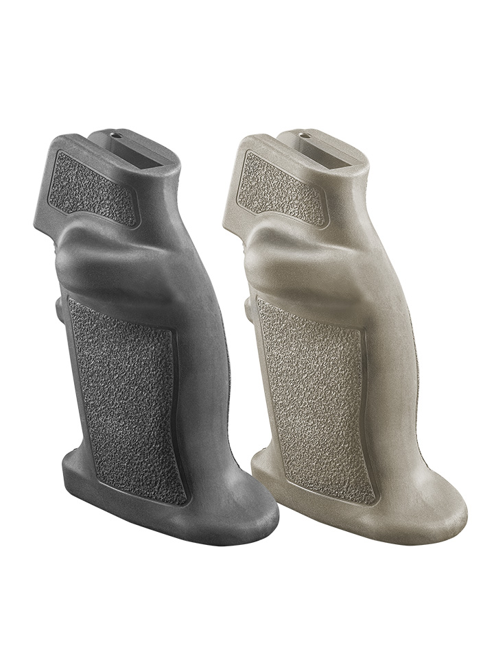 The Chubby Grip® AR Pistol Grip for an AR style rifle or carbine, is designed with shooter ergonomics in mind. The full palm swell fills the hand, providing a consistent and rapid grip, properly positioned to promote accurate and repeatable shots on target. The thumb rest and palm shelf work together to lock the hand in place shot after shot, while the raised trigger finger surface, forces the finger into the proper curved position for better trigger control and comfort. Available Right Hand only.